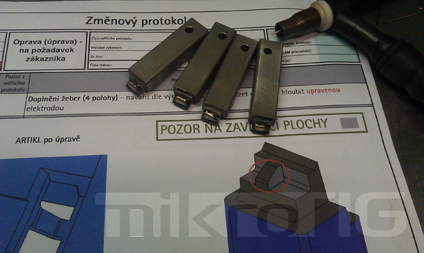 navaření opotřebovaného dílu indexová změna tažnice 1 indexová změna tažnice 2 navaření hrany matrice 1 navaření hrany matrice 2 navaření poškozené hrany střižníku navaření poškozené tažnice navaření poškozených částí střižníků a matric